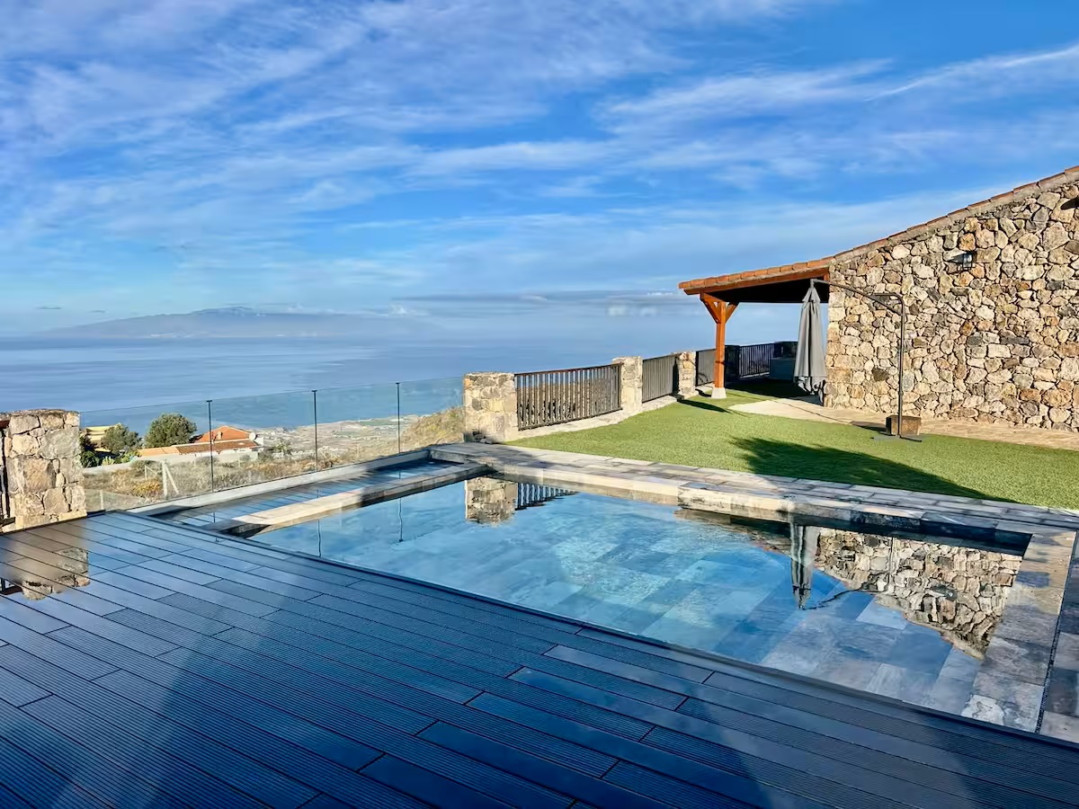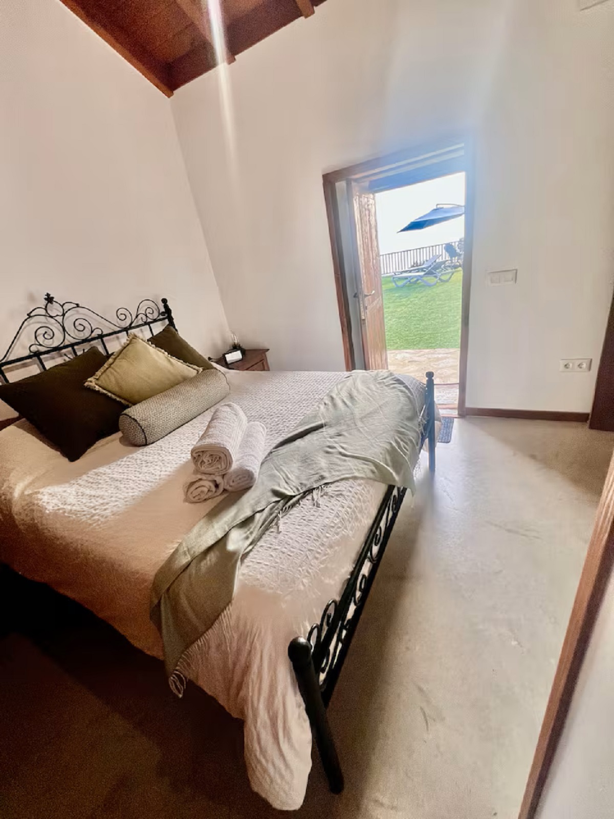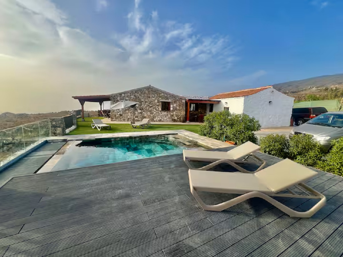 Im Haus befinden sich neben dem großzügigen Wohnbereich noch zwei Schlafzimmer mit Doppelbetten (150 x 200 und 160 x 200), sowie zwei Badezimmer mit Dusche; Waschbecken und WC. Das Wohnzimmer verfügt über ein Schlafsofa, worauf ein Kind oder Jugendlicher Platz zum Schlafen finden würde. Im Außenbereich finden Sie eine großzügige Außenterrasse mit Grill, Gartenanlage und einer Außendusche für den Pool. Lassen Sie sich von der Umgebung in den Bergen und der phantastischen Aussicht auf La Gomera, El Hierro und La Palma begeistern und genießen Ihren Urlaub in entspannter Atmosphäre. Genießen Sie unvergessliche Sonnenuntergänge mit einem atemberaubendem Panorama!